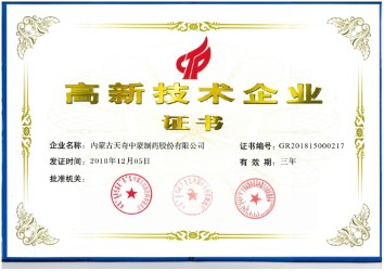 喜讯丨天奇中蒙制药荣获国家“高新技术企业”认...