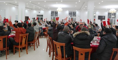 天奇药业集团董事长佘广宇请一线员工吃年夜饭送...