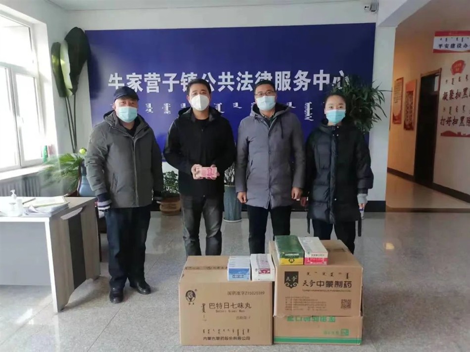 近日,蒙缘堂公司总经理于磊的代表天奇蒙药集团向喀喇沁旗牛营子镇政府捐赠了天奇蒙药集团优选子公司天奇中蒙制药新生产的具有预防和治疗功效的扫日劳清肺止咳胶囊、克感额日敦片、藿香正气丸、防风通圣丸、羚羊清肺丸等中(蒙)药,药品价值5万元。