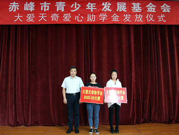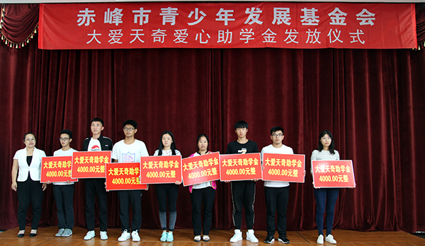 天奇蒙药集团,是赤峰土生土长的企业。受这一方热土养育,十几年来,在创造经济效益的同时,天奇始终没有忘记回馈家乡人民,一直关注和支持赤峰市的公益事业,先后对186名贫困学生提供172万元资助。2016年初,天奇出资100万,与共青团赤峰市委员会共同设立“大爱天奇助学基金”,该基金以助困奖优、传播爱心、回报社会为宗旨,自助家庭困难、品学兼优的应届本科大学生(研究生)、应届高三毕业生。