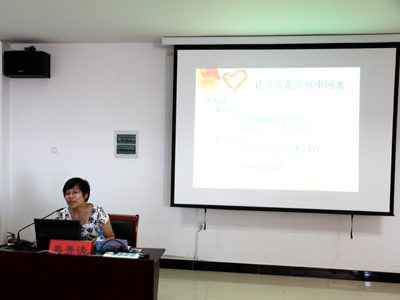 赤峰市团委副书记鲁秀清为志愿者们做报告