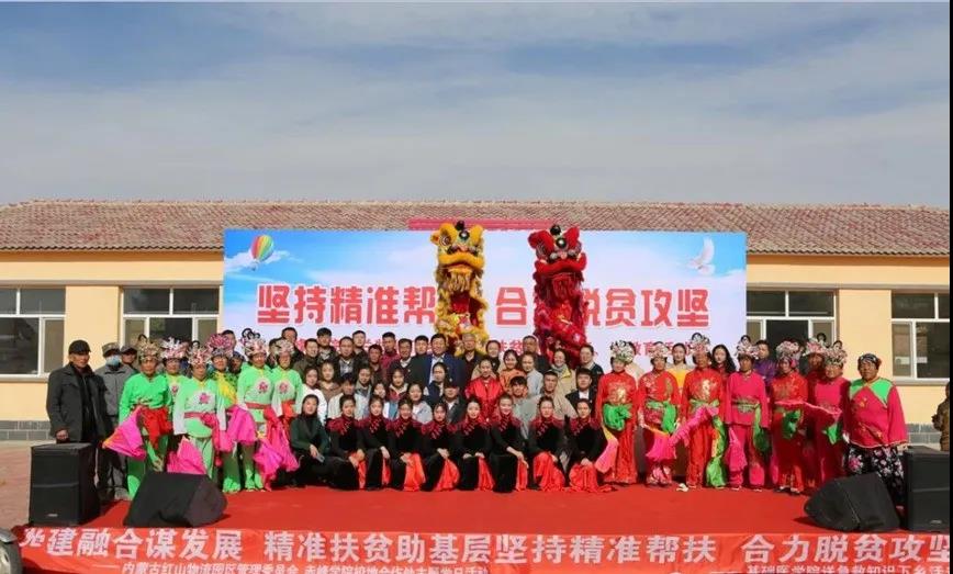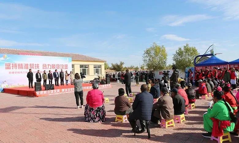 10月17日时值全国扶贫日,为进一步推进扶贫工作,落实工作计划,内蒙古天奇蒙药集团与赤峰学院108名师生到赤峰市翁牛特旗乌敦套海镇五牌子村开展乌兰牧骑下乡暨全国扶贫日主题活动。