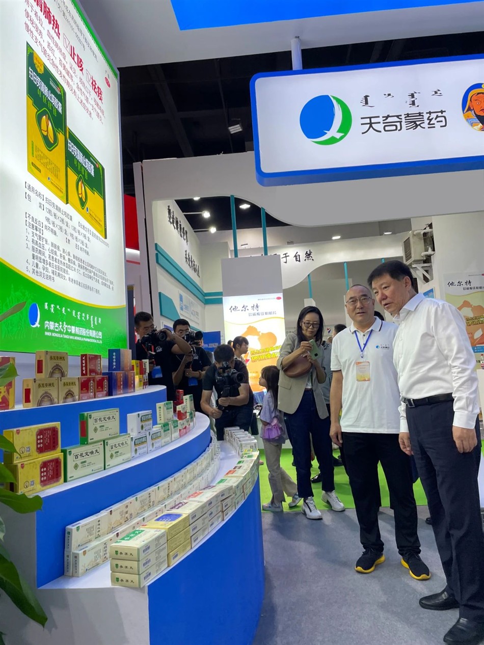展会期间,内蒙古自治区副主席奇巴图一行莅临天奇蒙药集团展位,了解集团现阶段的攻坚主题,对集团未来发展给予指导和建议。天奇蒙药集团营销保障部总经理、天奇医药公司常务副总赵文义向奇巴图主席一行介绍了企业目前经营发展情况,并表示将继续以守正创新、昂扬奋进的姿态,发挥自治区蒙药领军企业的力量,助推蒙药跨越式发展。