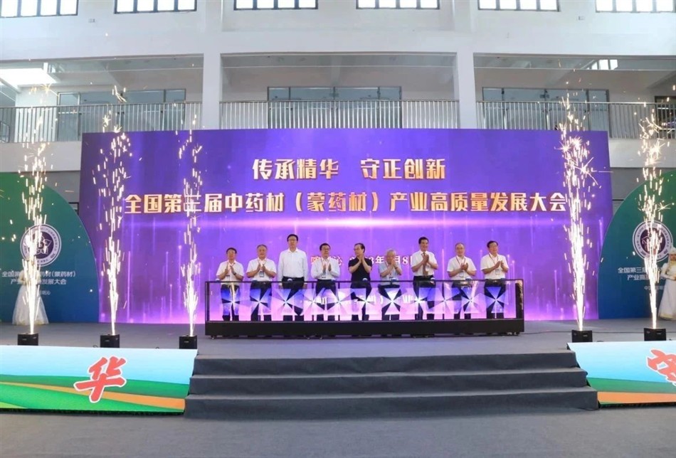 出席开幕式的相关领导共同为“全国第三届中药材(蒙药材)产业高质量发展大会”按下开幕键。