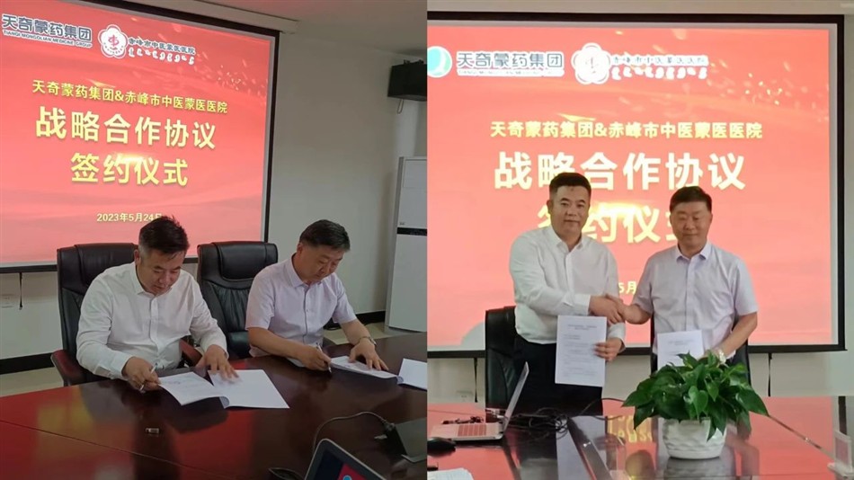 2023年5月24日,经天奇蒙药集团与赤峰市中医蒙医医院双方多次互访、磋商,在天奇蒙药集团会议室举行了战略合作框架签约仪式,结为战略合作伙伴。