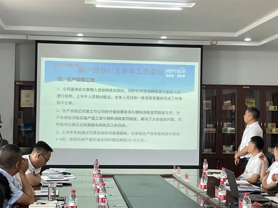 会上,蒙药药业集团总裁、蒙药股份有限公司董事长佘广耀;集团运营总裁、蒙缘堂药业公司总经理刘明超;集团运营总裁、天奇医药有限公司总经理佘宜寰;蒙药药业集团总工程师邢界红;集团总裁助理、蒙药股份营销中心总经理方凌霄;天奇中蒙公司总经理朱晓莉;天奇生物公司财务总监季明伟;博纳检测公司总经理、博奥研究院院长上官同强对上半年工作情况作了报告,并结合自身工作重点及存在的不足和问题,明确了下半年工作目标和计划,并对相关工作进行了细化安排和部署。