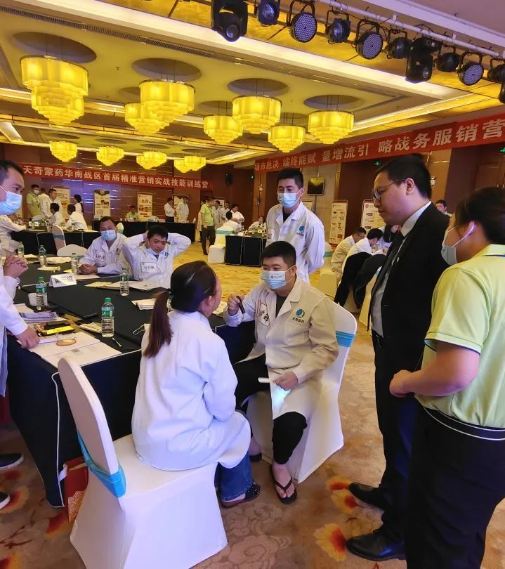 天奇蒙药集团特外聘中医药专家谢老师、聘请全国学术经理郑老师、金牌讲师李老师,分别为学员带来了“理论—实践—现场”的精选课程及实战演练指导,通过一对一考核通关促进学员对理论和技能的巩固;随后,通过经验交流,学员对标了自己心目中的榜样,榜样提振了学员的学习兴趣和学习信心;同时,通过训练学员有了新的自我认知,改变了学员的行销思想和行销行为,重塑了个人的社会价值定位、为学员在人生职业生涯开拓一个新的平台有了铺垫。