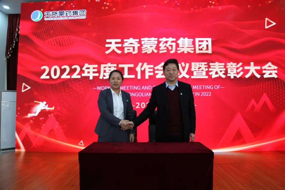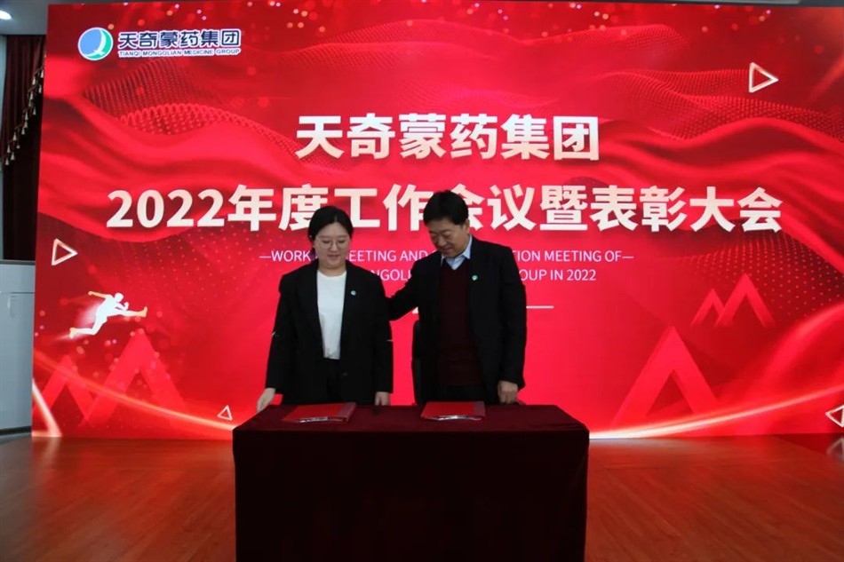 集团董事长佘广宇与天奇中蒙制药公司总经理朱晓莉签订2022年经营管理目标责任状