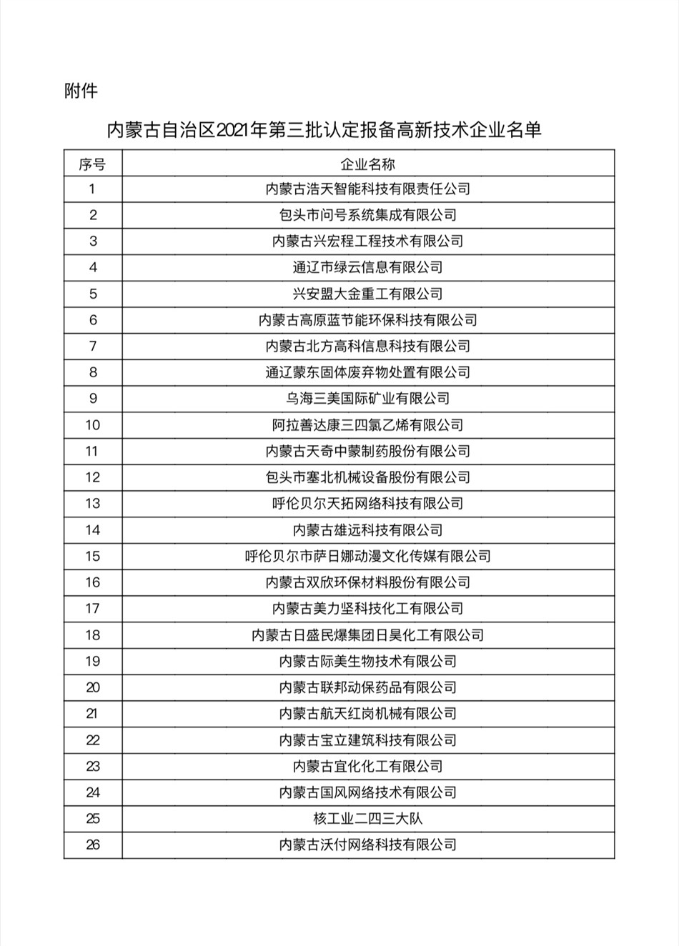 12月1日全国高新技术企业认定管理工作领导小组办公室发布了关于公示内蒙古自治区2021年第3批认定报备高新技术企业名单的通知,内蒙古天奇中蒙制药股份有限公司荣登榜上。
