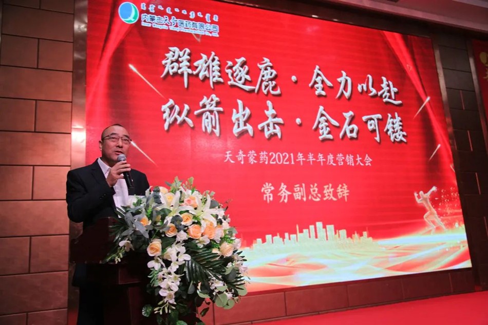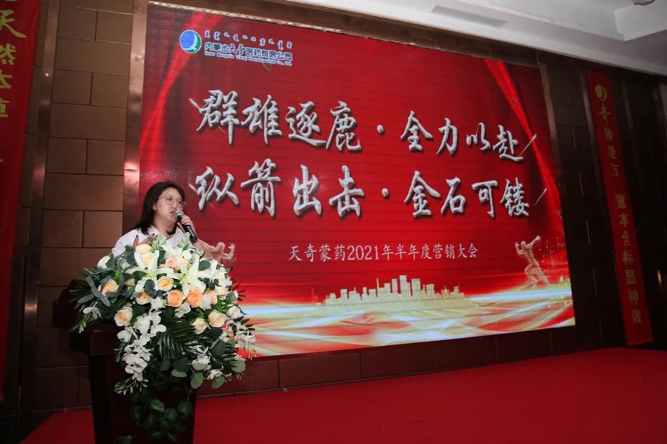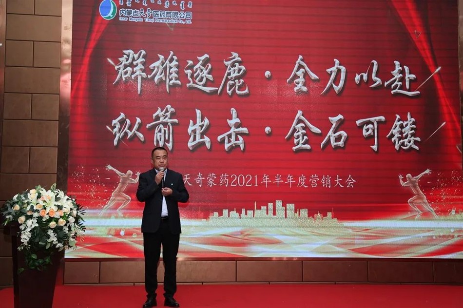 9月24-25日,内蒙古天奇医药公司2021年半年度工作会议隆重召开,天奇蒙药集团董事长总裁佘广宇;集团副总裁蒙缘堂药业公司总经理刘明超;集团营销总裁医药公司总经理佘宜寰;天奇中蒙制药公司总经理朱晓莉;博奥研究院院长博纳检测公司总经理上官同强;集团营销保障部总经理医药公司常务副总赵文义;集团市场监察部总监魏默然;医药公司副总经理华东战区总经理杨井岭;医药公司财务总监王强;医药公司运营总监谭世宇;华北战区总经理闫志勇;华中战区总经理鲍永军;西南战区总经理王国军;西北战区总经理高健翔;以及医药公司全体省区经理以上营销战士及职能部门代表等100余人齐聚一堂,系统总结回顾上半年工作,表彰先进, 进一步强化“群雄逐鹿、全力以赴,纵箭出击、金石可镂”的主题,积极谋划下半年工作。
