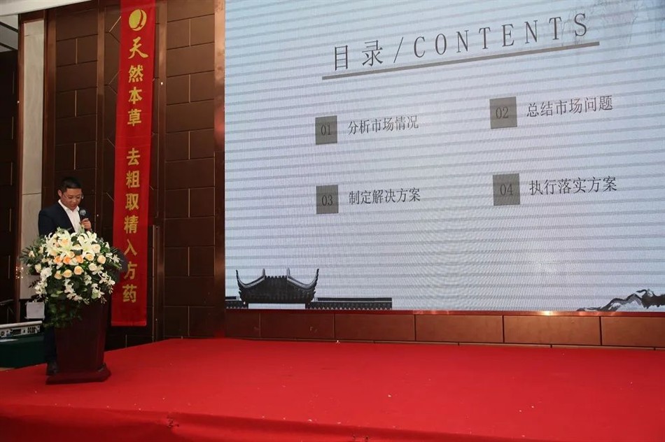 会上,集团营销总裁天奇医药公司总经理佘宜寰总结了2021上半年工作。佘总对医药公司1-8月销售战报和组织发展情况及业务亮点分别进行了总结和分析;并清晰的规划了从“精品药战略”向“人才战略”+“服务战略”转型的细节与方向。佘总对提出2021年下半年营销工作将继续秉持“一个中心,两个聚焦,五个增长点”的指导思想,要做到“聚焦上人”、“向人才要效益”,并作出了“发展组织 深耕终端 突破自我 站上新台阶”的指示。
