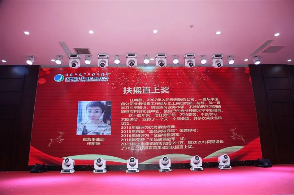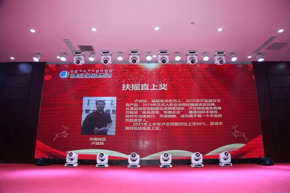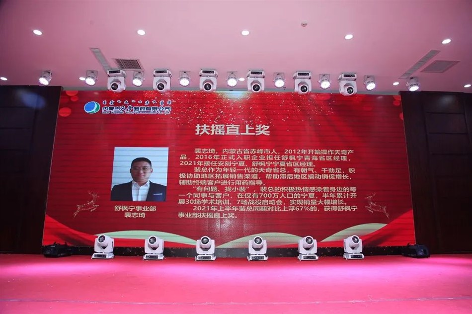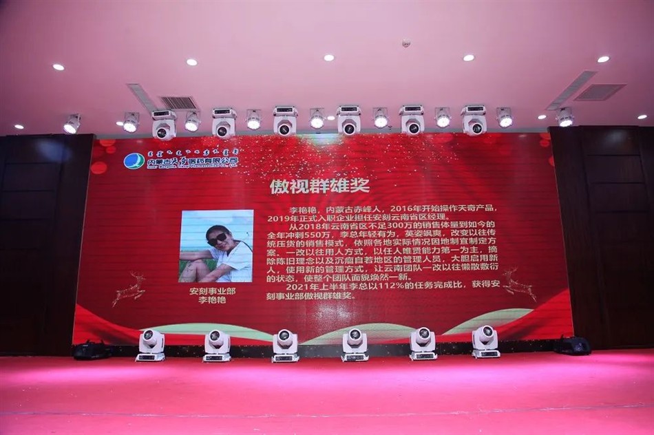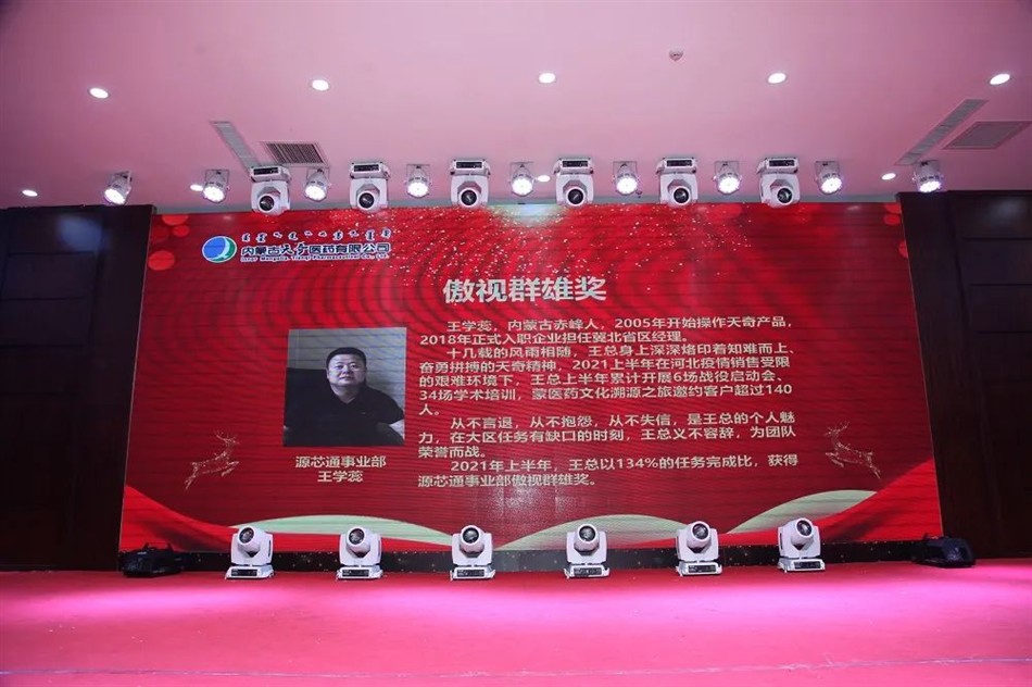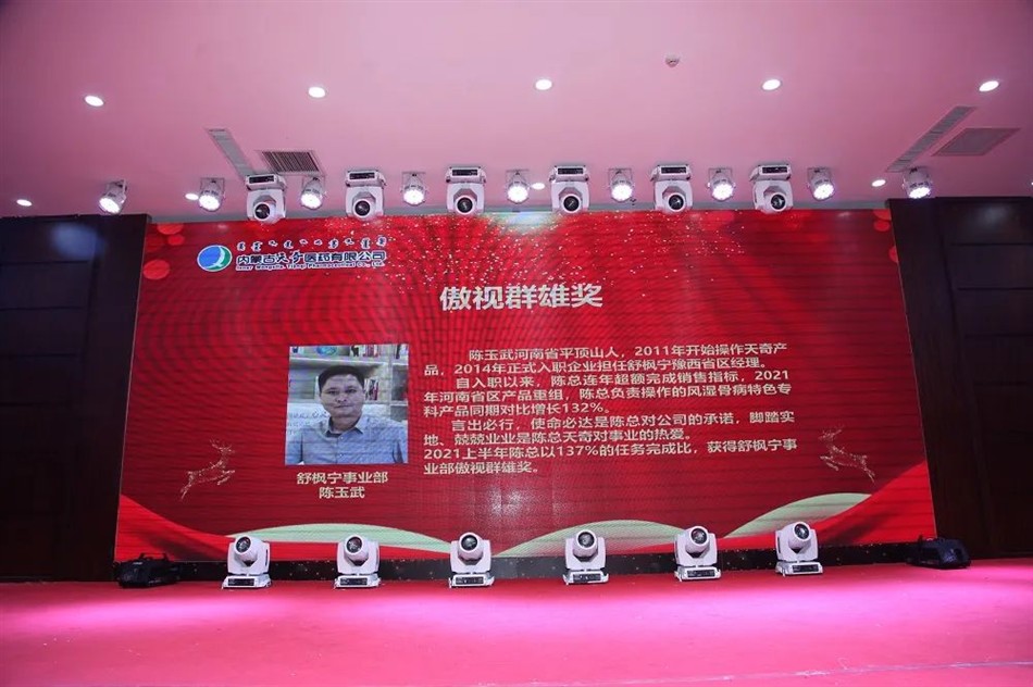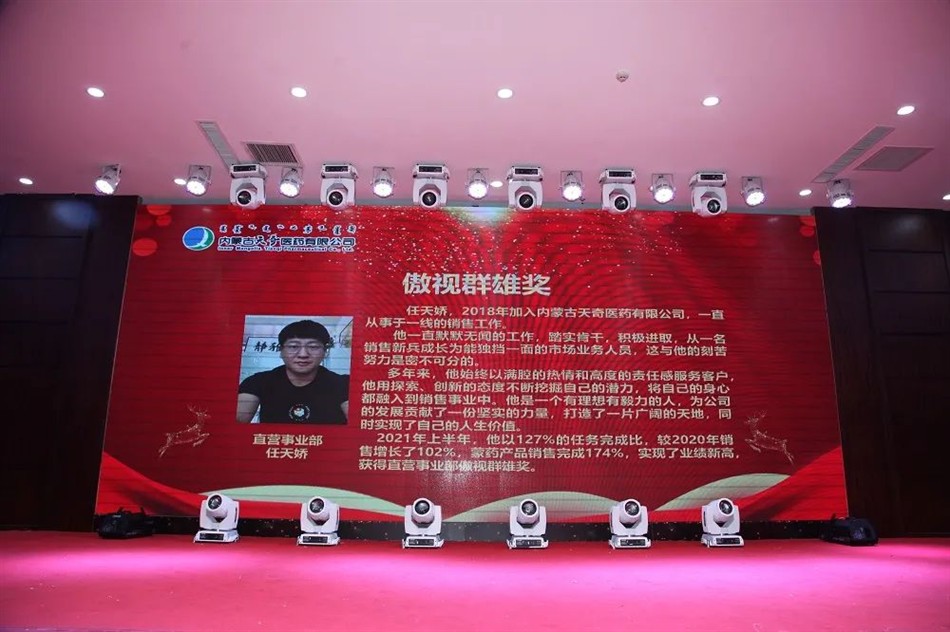 2021年上半年,他以127%的任务完成比,较2020年销售增长了102%,蒙药产品销售完成174%,实现了业绩新高,获得直营事业部傲视群雄奖。