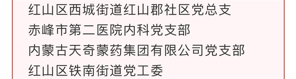 今年是中国共产党成立一百周年。中国共产党的一百年,是矢志践行初心使命的一百年,是筚路蓝缕奠基立业的一百年,是创造辉煌开辟未来的一百年。在庆祝中国共产党成立一百周年之际,为表彰先进、弘扬正气,营造对标先进、学习先进、争当先进、赶超先进的浓厚氛围,凝聚起建功新时代、立业新征程的磅礴力量,市委决定,对优秀共产党员、50名优秀党务工作者、100个先进基层党组织予以表彰,分别授予“赤峰市优秀共产党员”“赤峰市优秀党务工作者”“赤峰市先进基层党组织”称号。内蒙古天奇蒙药集团有限公司党支部荣誉获选。