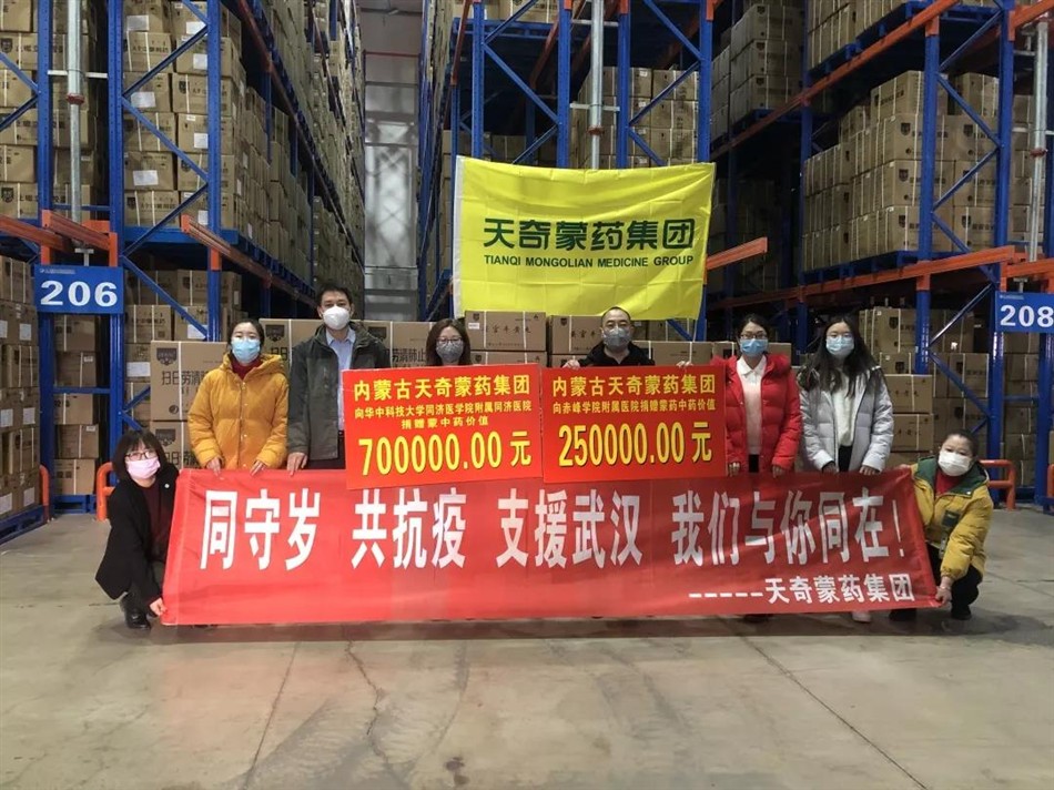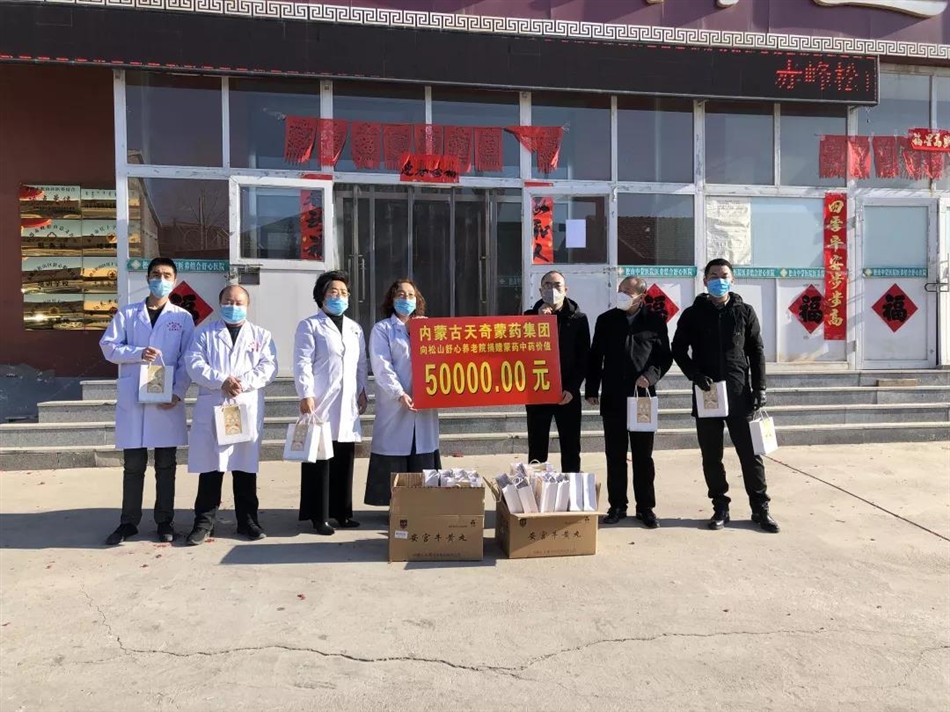 内蒙古天奇蒙药集团向华中科技大学同济医院、赤峰市附属医院、赤峰市松山舒心养老院共计捐赠100万元药品。