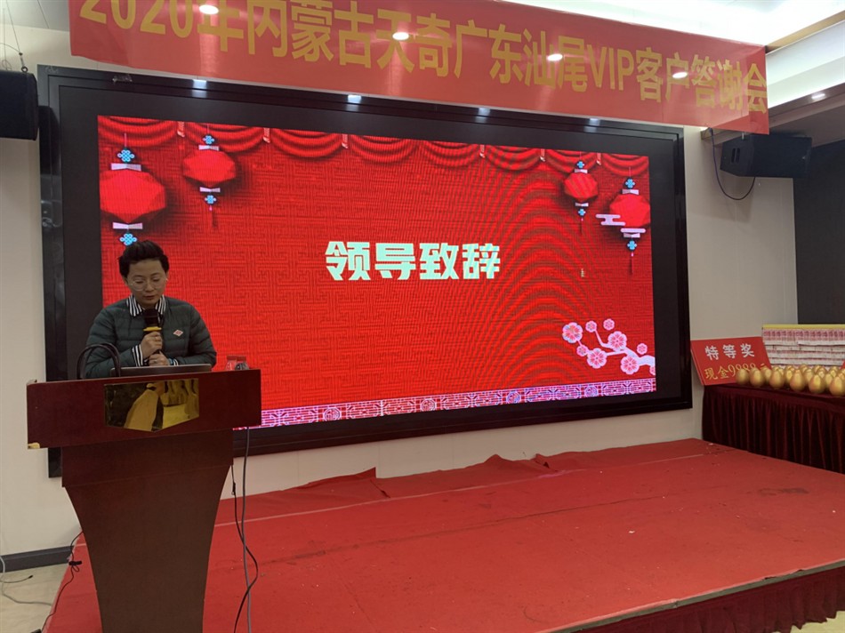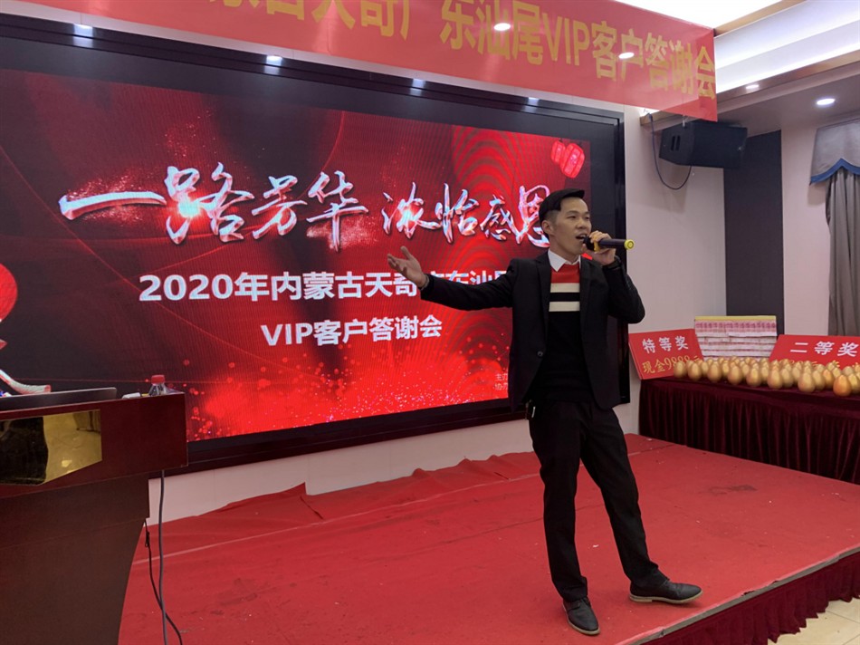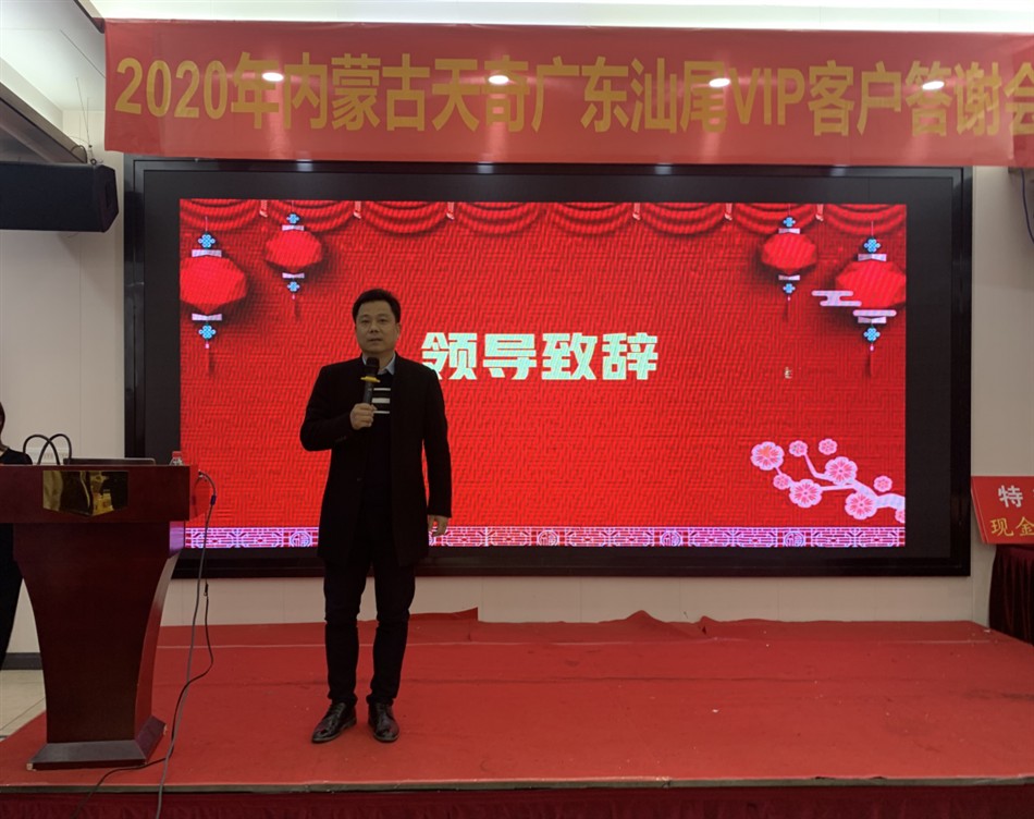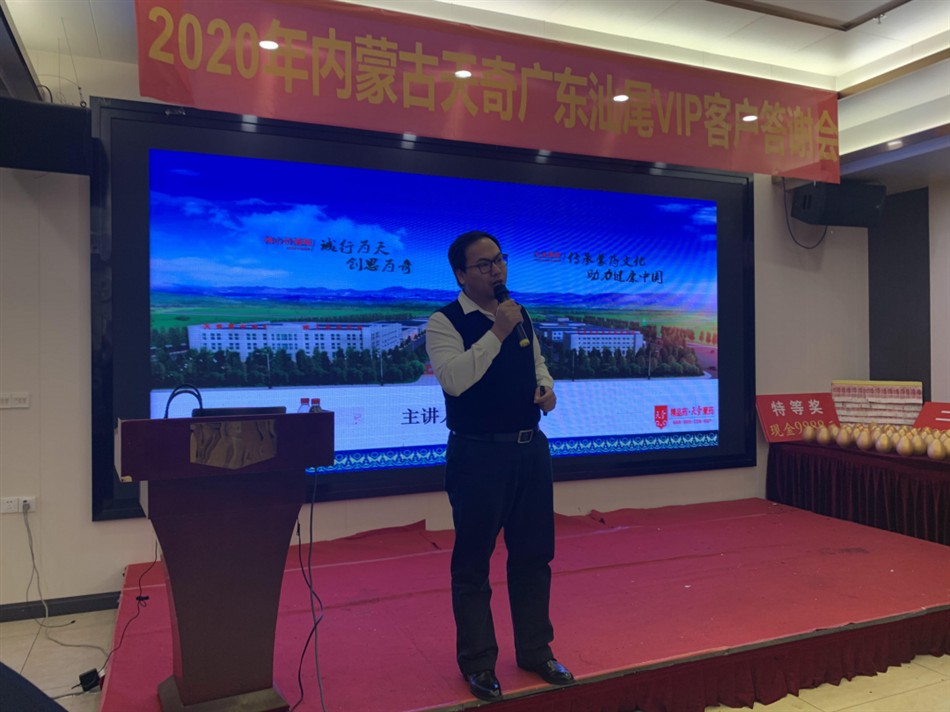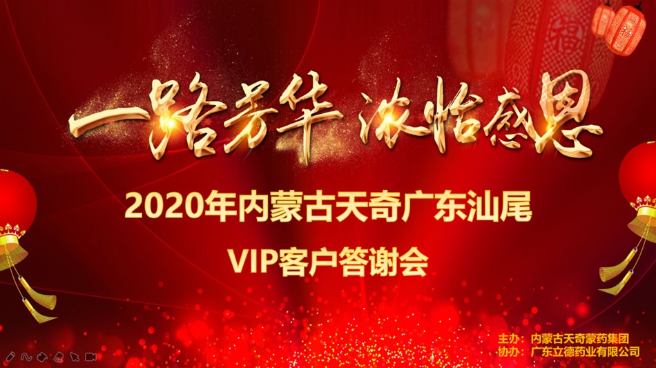 2020年12月25日,由内蒙古天奇蒙药集团主办,广东立德药业有限公司协办主题为“一路芳华,浓怡感恩”汕尾VIP客户答谢会,本次会议诚邀广东汕尾地区六十多名基层名医及新老客户齐聚一堂,共飨温馨和美。辞别2020,喜迎2021。