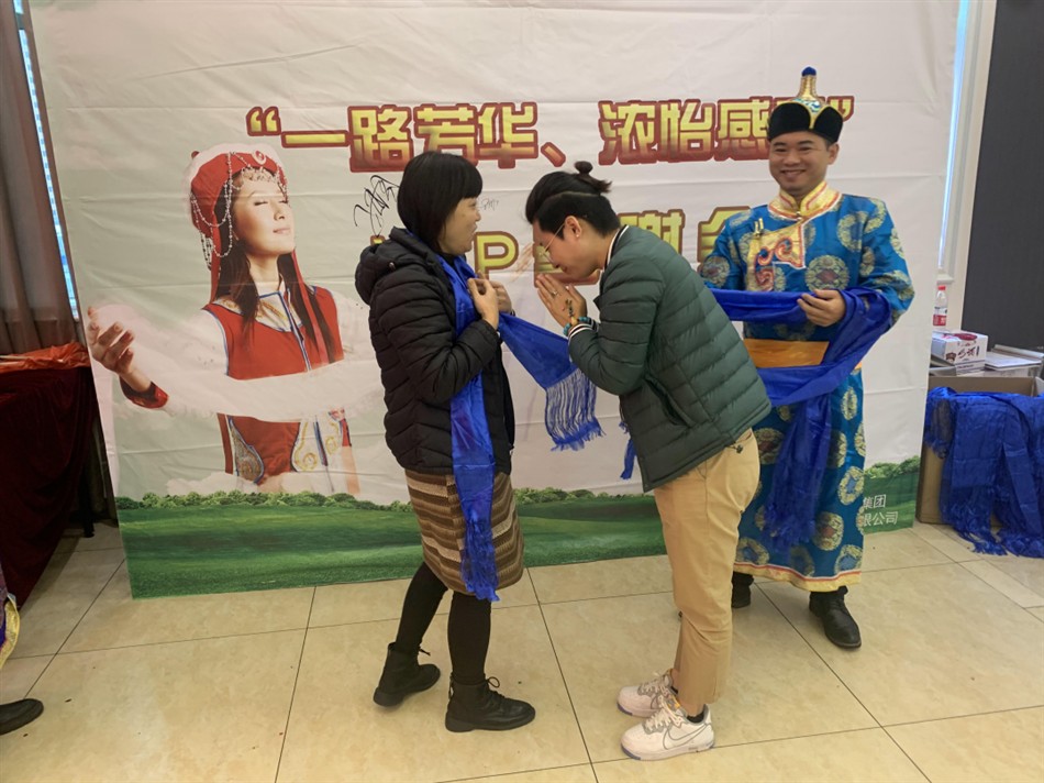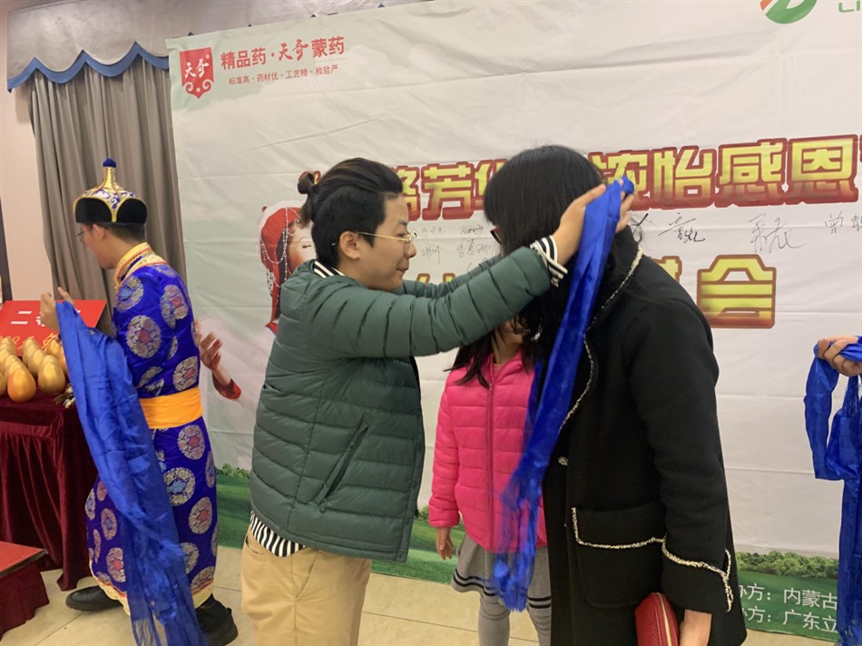 会议开始前,天奇蒙药为一直以来支持我们的名医们献上蒙古族特有的蓝色哈达。献哈达,是蒙古族对待宾客最高的礼节。蓝色哈达象征蓝天,代表智慧、健康、永恒、平安和忠诚。回顾2020,天奇蒙药衷心感恩各位名医们的一路相伴,同舟共济,携手同行。