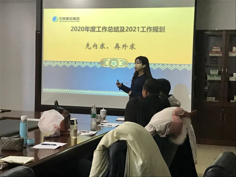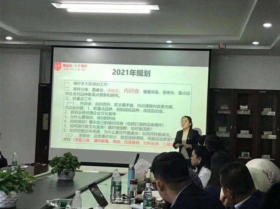 继天奇医药有限公司2021年营销大会结束后,为努力实现“让蒙药品牌叫响中华大地”、提升销售团队专业水准,促进“精品药 天奇蒙药”品牌深着市场;1月3-4日天奇医药公司召开了学术团队总结、分享、培训会。集团营销总裁 医药公司总经理佘宜寰、集团营销总裁助理 华南战区总经理方凌霄、东北战区总经理牟国震、华北战区总经理闫志勇、华东战区总经理杨井岭、华中战区总经理鲍永军、西南战区总经理王国军、西北战区总经理高健翔,市场推广经理及培训师参加此次会议。