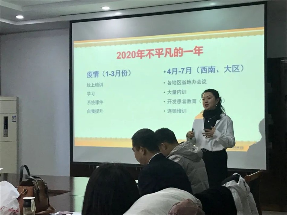 在交流会上,学术总监周杨老师带头作出2020年工作总结和2021年工作规划;李东来老师也进行了精彩的总结分享;张小凤老师为大家分享南北方培训推广的差异,并代表市场反馈了相关问题;张彩凤老师对所属东北战区的市场环境、业务员培训意识误区进行分析,以及如何改进等;杨楠老师为大家分享全年的工作。尤其是分享下半年重点在湖北市场开展民族特色圆桌会和“现金版”圆桌会,值得复制推广,非常精彩;马学敏老师以“先内求,再外求”为主线进行精彩总结分享;李海军老师从“线上秒杀、线上认购、内训”等方面为大家展开并爆出经典词汇“发挥余热”;曹旺老师比较全面丰富的为大家分享推广经理的工作总结和规划。