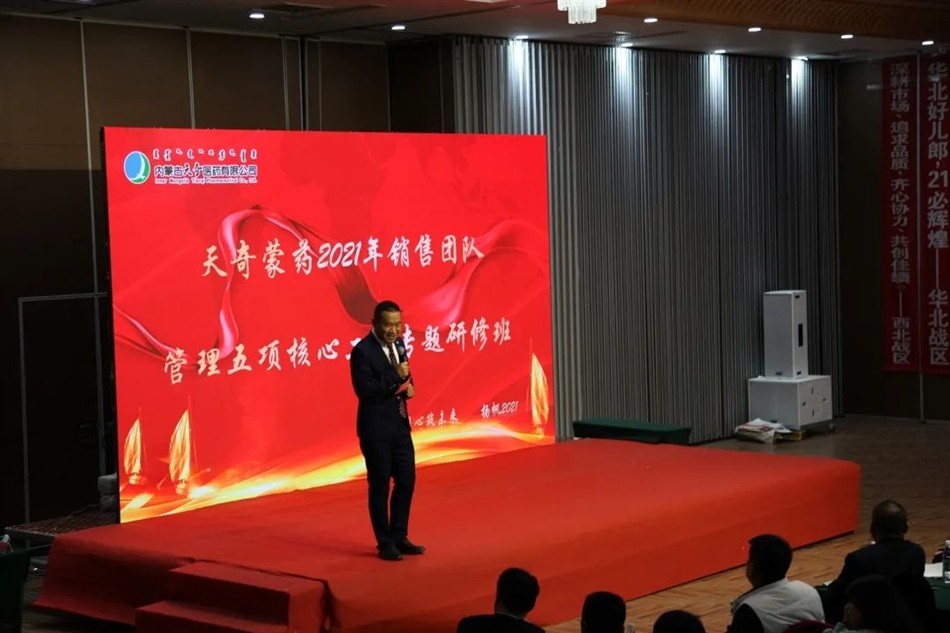 为坚定不移地践行“一个中心,两个聚焦,五个增长点”的营销思想,促进销售管理者的角色转变,推进天奇医药公司2021-2023三年营销规划,实现“让蒙药品牌叫响中华大地”的美好愿景;2021年1月1-2日,天奇医药公司特聘请知名销售人才培养导师【王飞老师】讲授课程【销售团队管理五项核心工具】,集团营销总裁 医药公司总经理佘宜寰、集团营销保障部总经理 医药公司常务副总经理赵文义、集团营销总裁助理 华南战区总经理方凌霄、东北战区总经理牟国震、华北战区总经理闫志勇、华东战区总经理杨井岭、华中战区总经理鲍永军、西南战区总经理王国军、西北战区总经理高健翔,省区经理,市场推广经理及培训讲师参加此次培训会议。