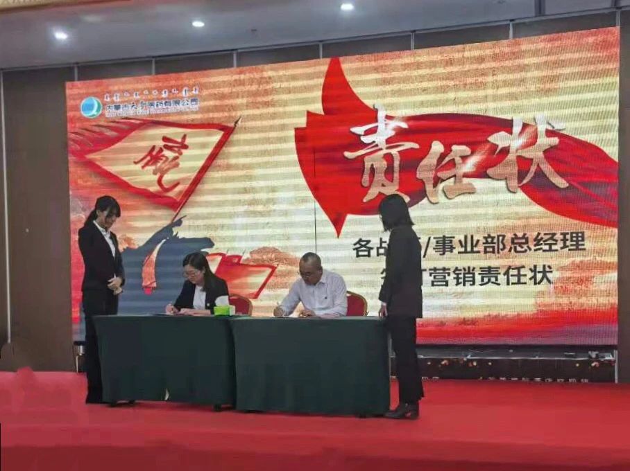 医药公司总经理佘宜寰与华南战区总经理方凌霄签订2021年营销责任状