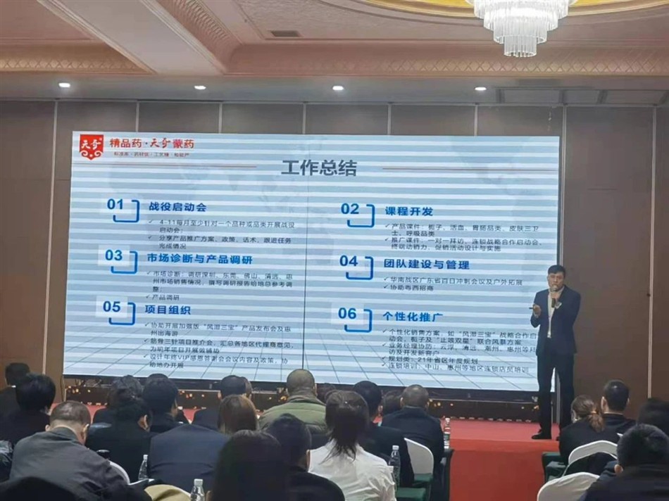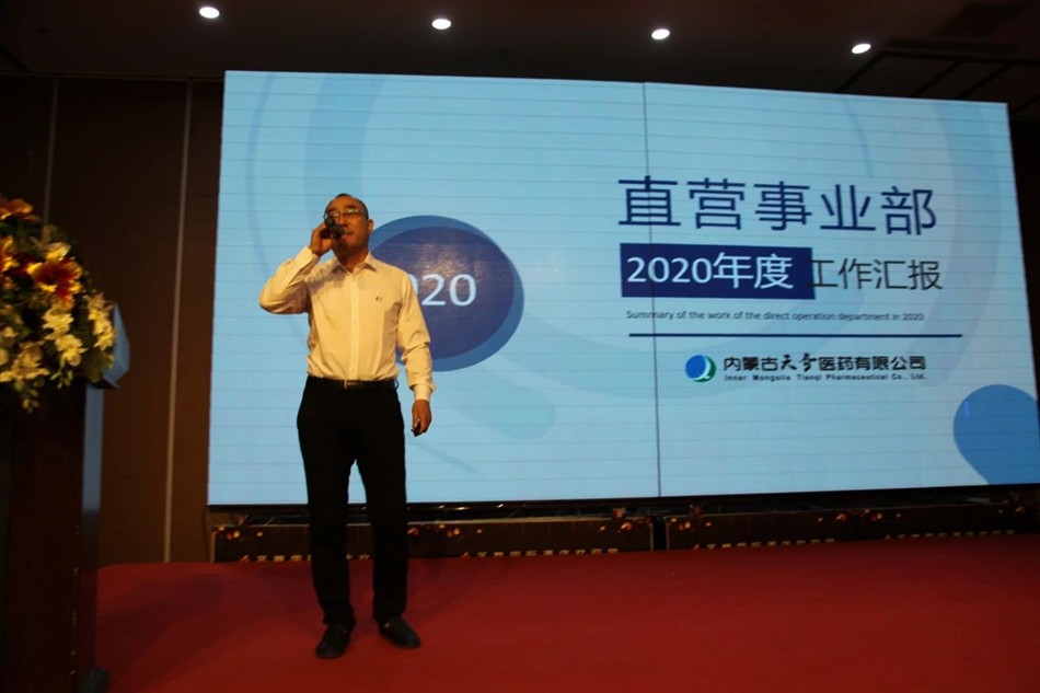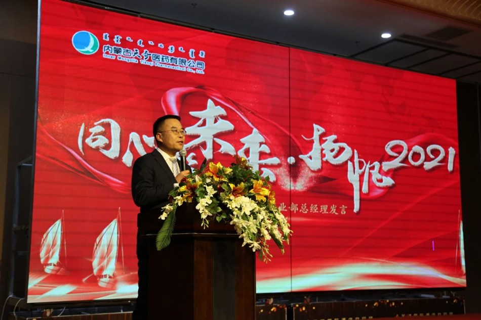 会上,天奇医药公司总经理佘宜寰致辞总结了2020全年工作。2020年各战区销售活动积极开展,培训讲师冲锋在前,各销售支持和服务部门主动配合,医药公司整体销售业绩较去年同期相比保持两位数增长;下半年,市场复苏逐渐回温,医药公司在集团领导的支持下、在自身逆流而上的努力下积极回款抢占先机,最终实现了2020年度逆势增长。佘总对2021年营销工作提出了继续巩固“一个中心,两个聚焦,五个增长点”的指导思想,并作出了在产品、战役、会议、内训多维度加持下,让蒙药品牌叫响中华大地的规划蓝图。