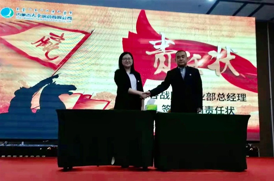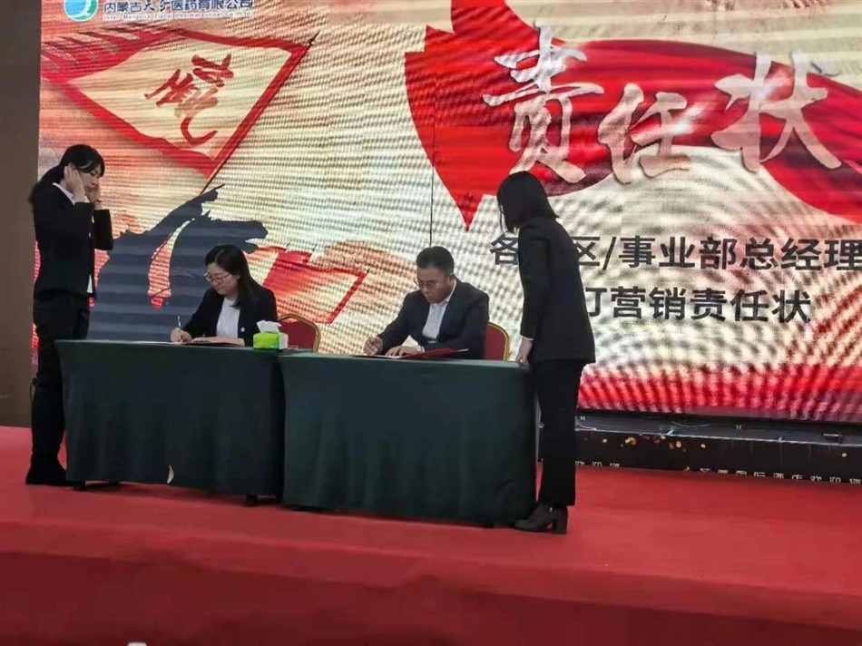 医药公司总经理佘宜寰与东北战区总经理牟国震签订2021年营销责任状