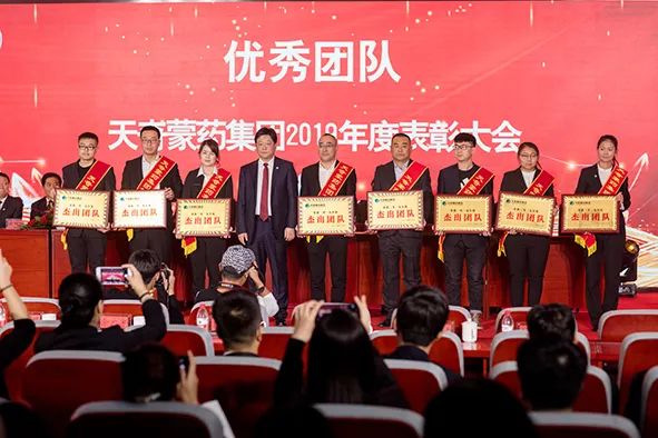总结表彰大会上,集团监事长佘广耀宣读《关于对2019年度优秀团队和优秀个人进行表彰奖励的决定》,表彰一年来为天奇蒙药集团发展做出突出贡献的团队与个人,并号召全体同事以他们为榜样,争创一流,为实现“百亿天奇”、“幸福天奇”努力奋斗。
