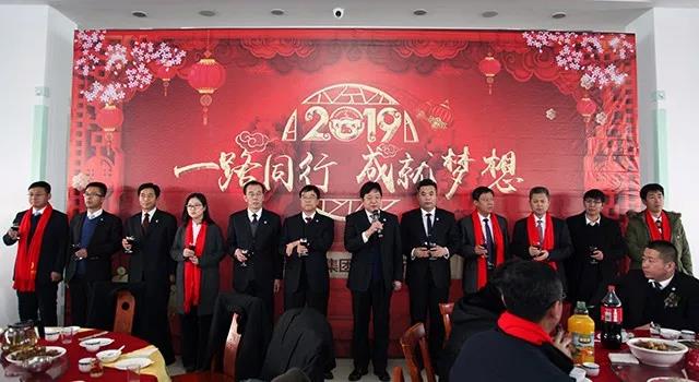 【集团高管同全体员工斟满美酒,举杯共饮】