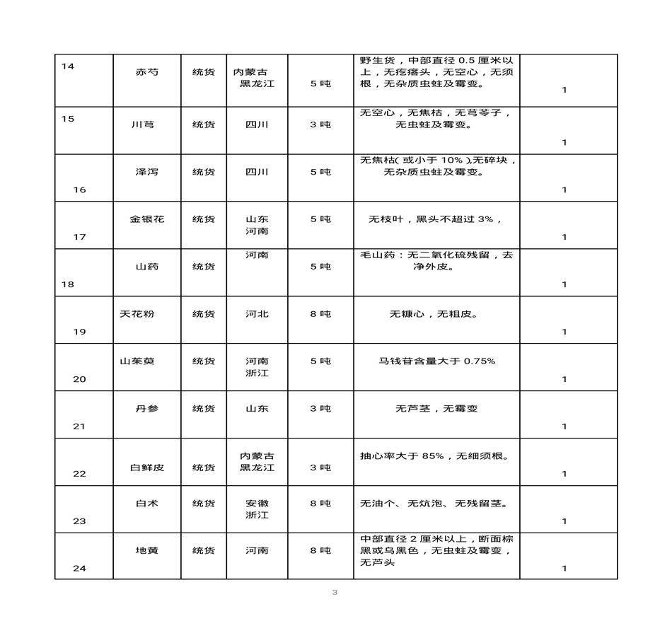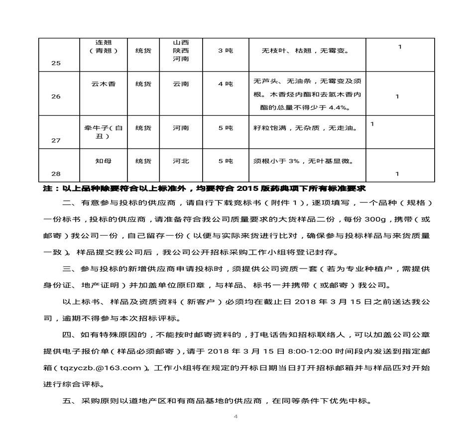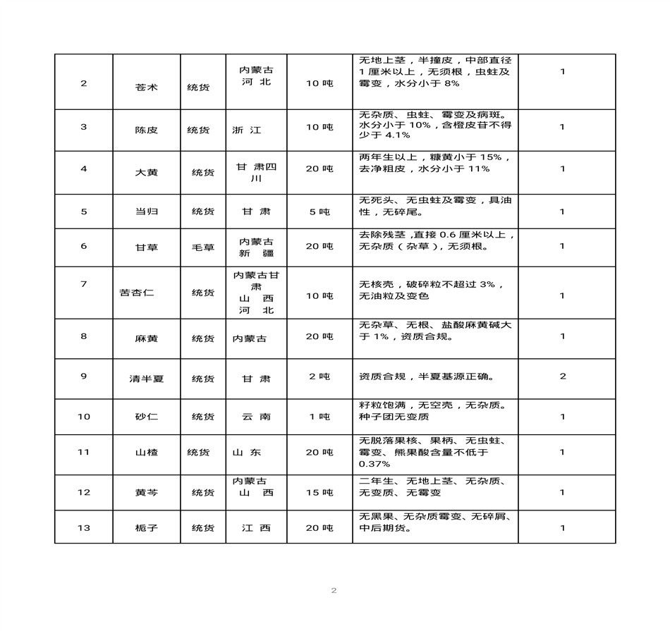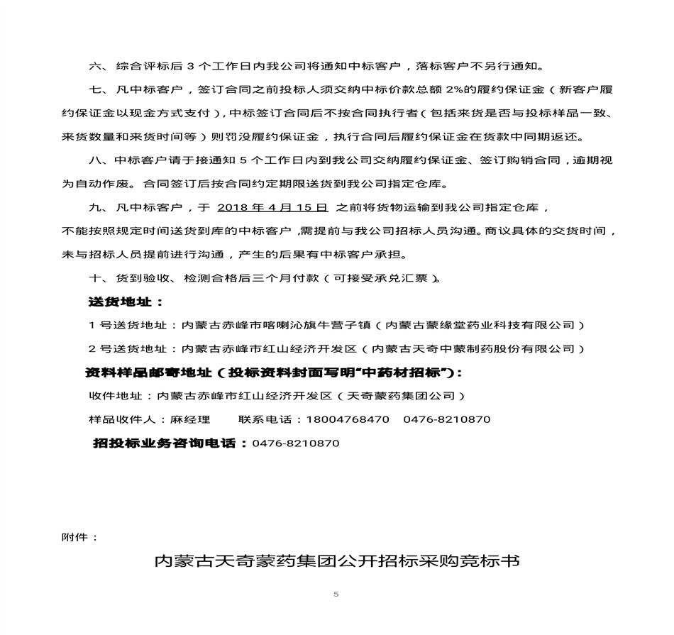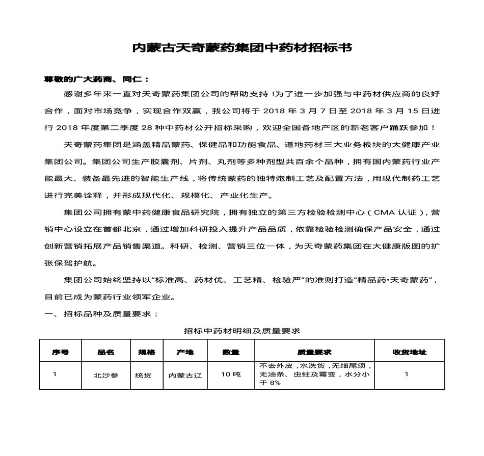内蒙古天奇蒙药集团中药材招标书