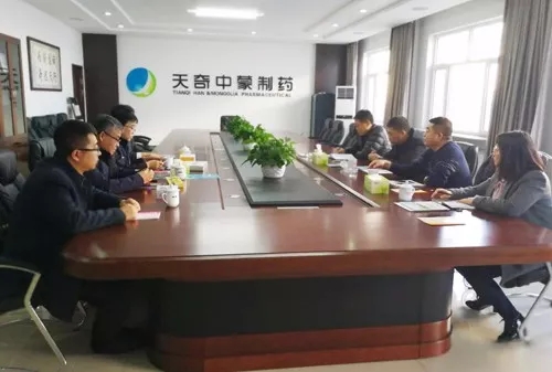 12月20日,内蒙古兰太药业有限责任公司总经理李红卫一行到天奇中蒙制药参观考察,探讨公司间战略合作事宜。天奇药业集团董事长佘广宇,天奇药业集团副总裁、天奇医药公司总经理佘广耀,天奇药业集团副总裁闫海涛,天奇中蒙制药总经理季云龙热情接待来访一行。