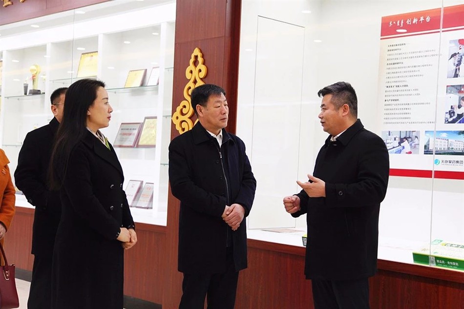 天奇蒙药集团常务副总裁韩风雨陪同调研组参观了蒙药展示与文化传播中心、传统蒙药制剂二车间。在参观过程中,韩风雨副总裁详细介绍了集团的发展历程、党群建设及“蒙中成药”“健康食品”“药材资源”“第三方检测”“医疗康养”五大主营板块的发展现状及未来发展思路。