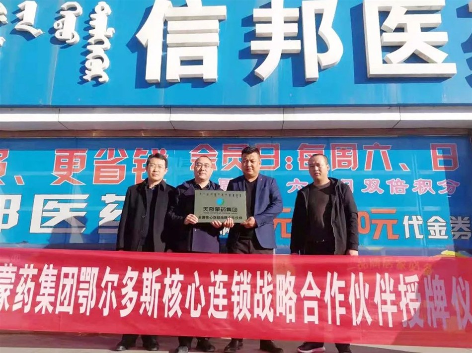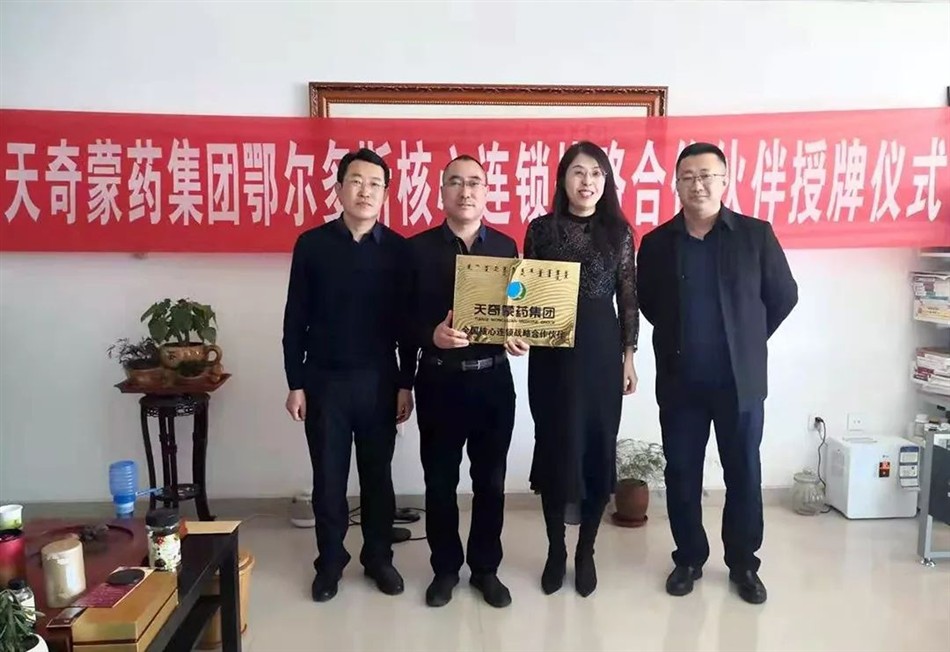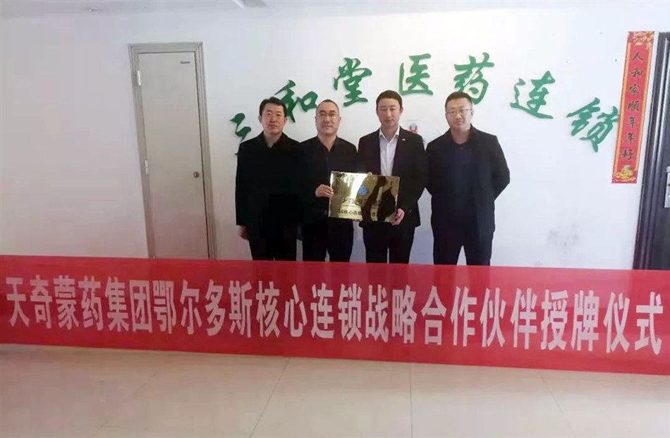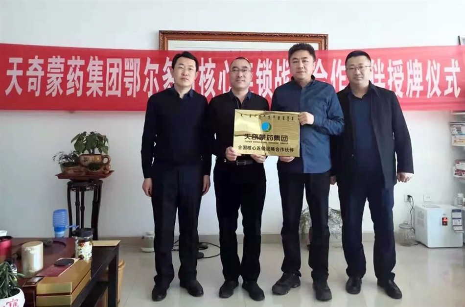 3月10日,天奇医药公司常务副总经理、直营事业部总经理赵文义等领导一行,到访鄂尔多斯市药店联盟,参加鄂尔多斯市药店联盟2019年联采会,并代表天奇蒙药集团,授予联盟多家会员企业“天奇蒙药集团全国核心连锁战略合作伙伴”称号。
