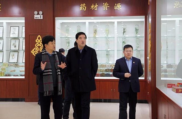3月3日上午,二连浩特市委书记鞠树文,市委副书记、市长刘志平等领导一行,在天奇蒙药集团董事长佘广宇、常务副总裁韩风雨的陪同下,到集团考察访问。