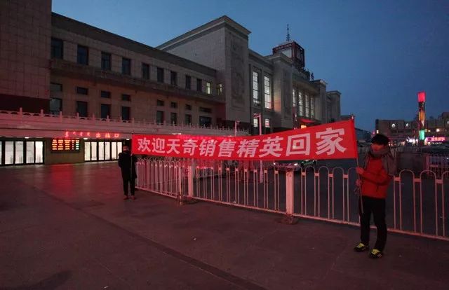 1月5日,天刚蒙蒙亮,后勤保障小组组员就早早来到赤峰火车站,准备迎接回家参加2018年营销大会的家人们,冷冽的寒风抵挡不住天奇后勤保障小组的热情,工作人员高高举起“欢迎天奇销售精英回家”的横幅,让刚刚下了火车的参会人员能够刚一出出站口就能够看到,给远道而回的家人春天般的温暖。在宾馆的签到处,负责接待的后勤保障小组人员从早忙到晚,接待回家的销售精英并为他们安排住宿和就餐等。