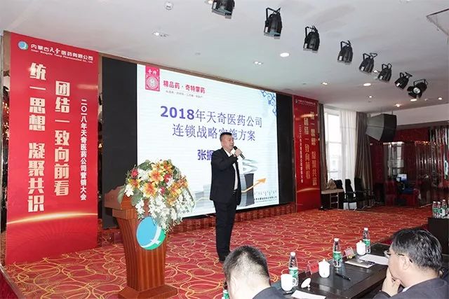 6日下午,天奇医药公司连锁管理部总监张振波先生向与会人员解读了2018年连锁战略方案。