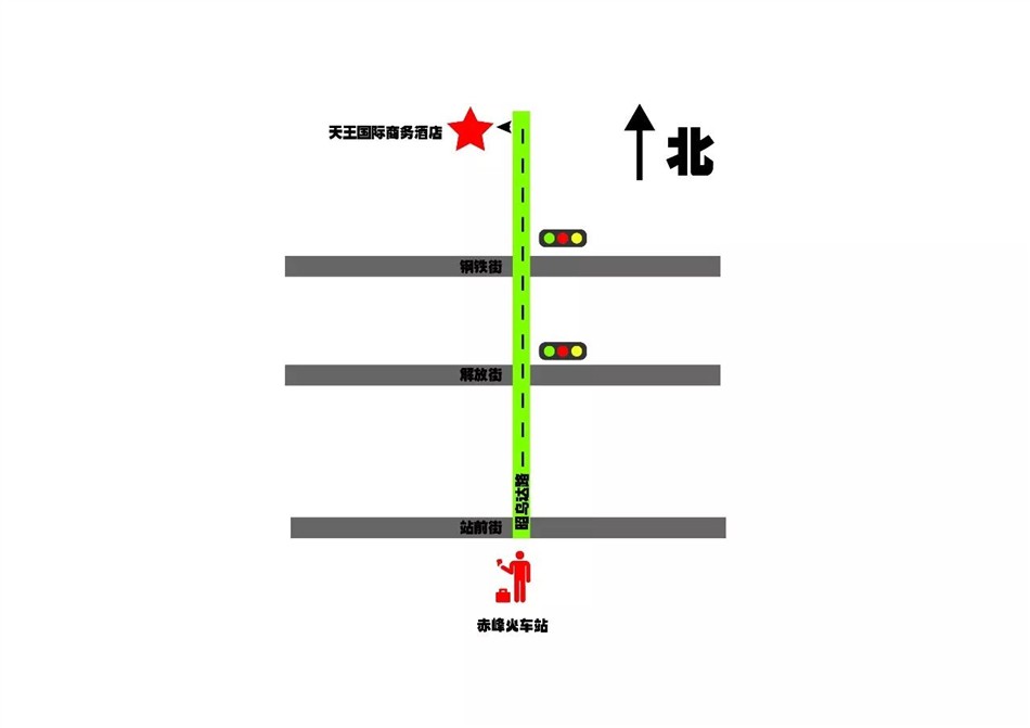 赤峰火车站出发步行1.4公里或乘1路公交车经3站到市医院站下车,步行194米到达天王商务酒店。