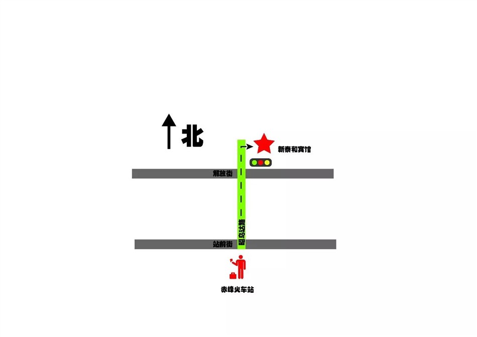 赤峰火车站北走158米或乘1路公交车经1站到达金尊宾馆站下车,步行44米到达新泰和酒店。