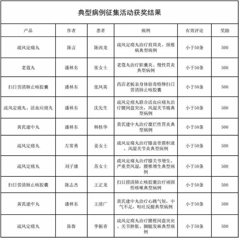 有奖病例征集获奖名单如下: