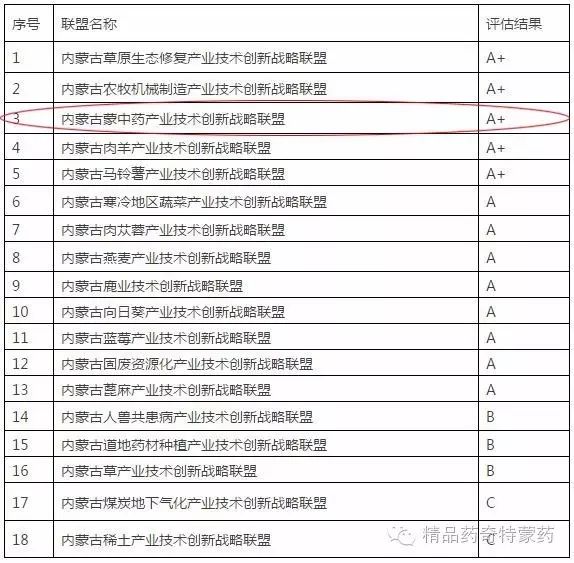 10月9日,内蒙古自治区科技厅对外公布2016年内蒙古自治区产业技术创新战略联盟(以下简称联盟)评估结果,内蒙古蒙中药产业技术创新战略联盟等5家优秀联盟被评为A+档。