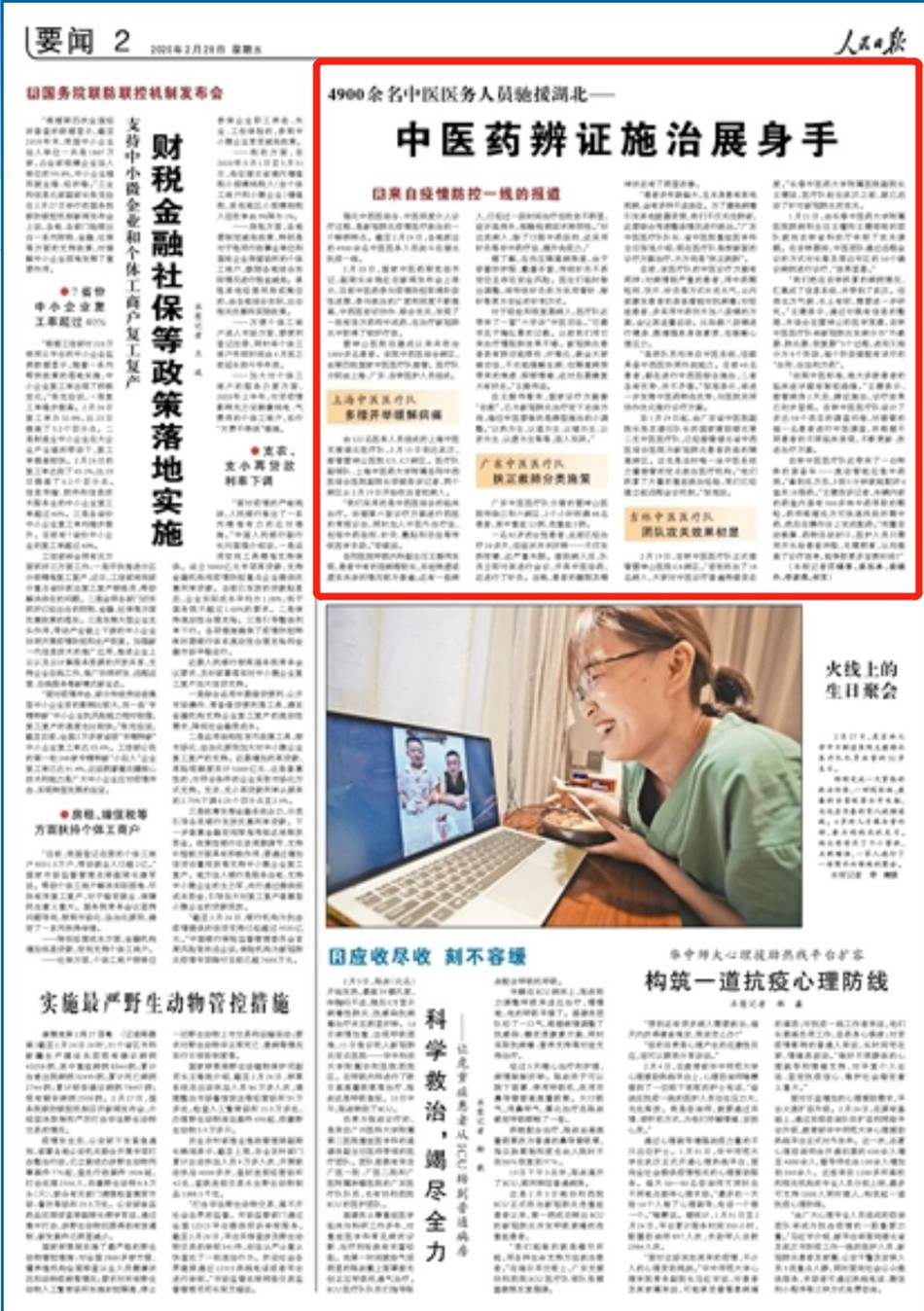 强化中西医结合、中医深度介入诊疗过程,是新冠肺炎疫情医疗救治的一个鲜明特点。截至2月24日,各地派出的4900余名中医医务人员战斗在湖北抗疫一线。