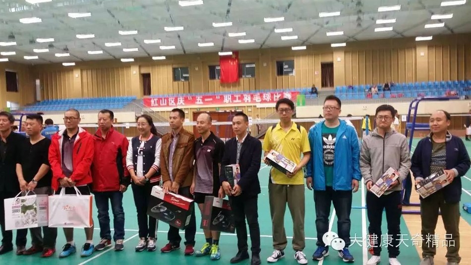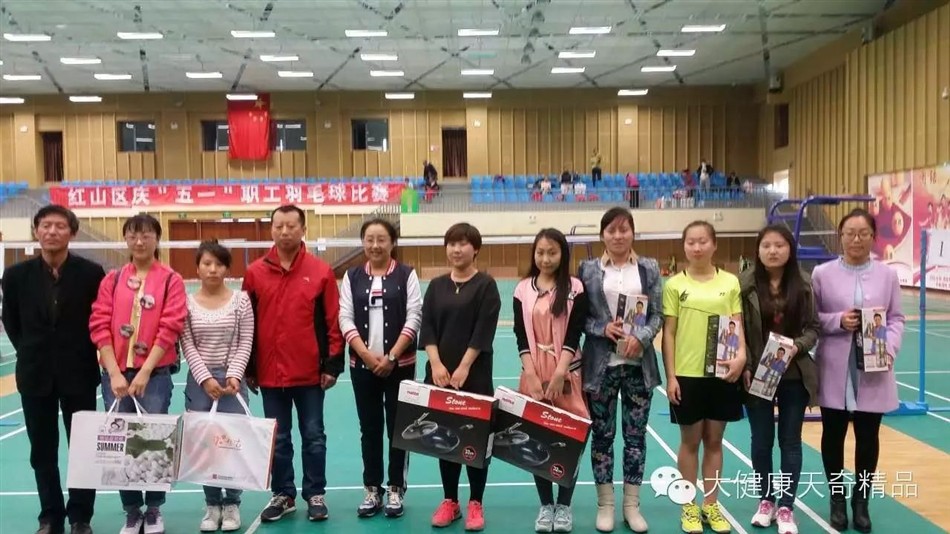 红山区总工会赵向阳主席与羽毛球比赛获奖选手合影