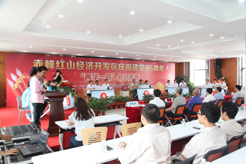 为庆祝建党95周年,扎实开展“学党章党规、学系列讲话精神、做合格党员”为主要内容的学习教育活动,引导广大党员干部进一步坚定理想信念、增强“四种意识”、树立清风正气、强化宗旨观念。红山经济开发区管委会组织14家企业单位组建队伍,每队选派三名代表参赛。比赛采取积分制,内容涵盖《党章》、《准则》、《条例》以及习近平总书记系列重要讲话精神等相关知识。竞赛分个人必答题、抢答题、风险题三个部分,同时也穿插观众互动环节。竞赛中,选手们聚精会神,反应敏捷,紧张激烈,精彩跌出,竞猜气氛严肃但不失活泼,彰显了各选手积极向上、锐意进取的精神风貌,体现了各公司狠抓党风廉政建设的坚定决心。