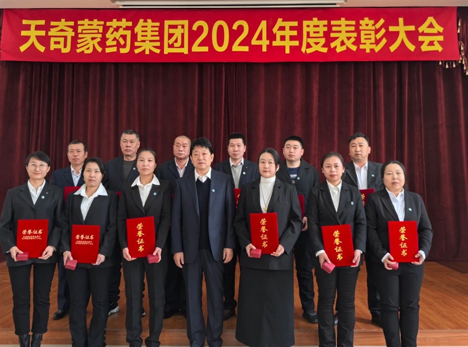 12月31日,天奇蒙药集团2024年度表彰大会在集团总部隆重召开。集团各部门、各公司管理人员、受表彰人员及职工代表240余人参加大会。