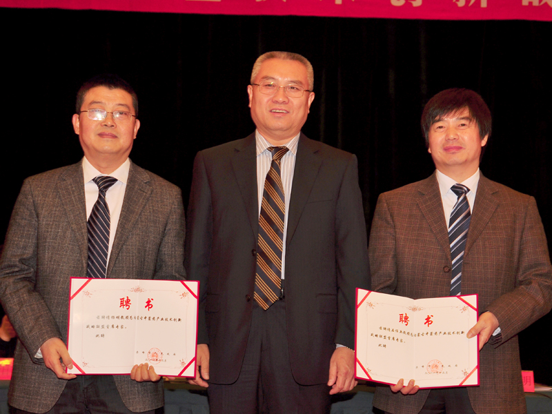 赤峰市人民政府包满达市长为首席专家江西中医学院副院长杨明教授和北京中医药大学中药学院副院长石任兵教授颁发聘书