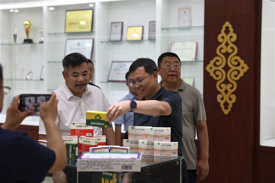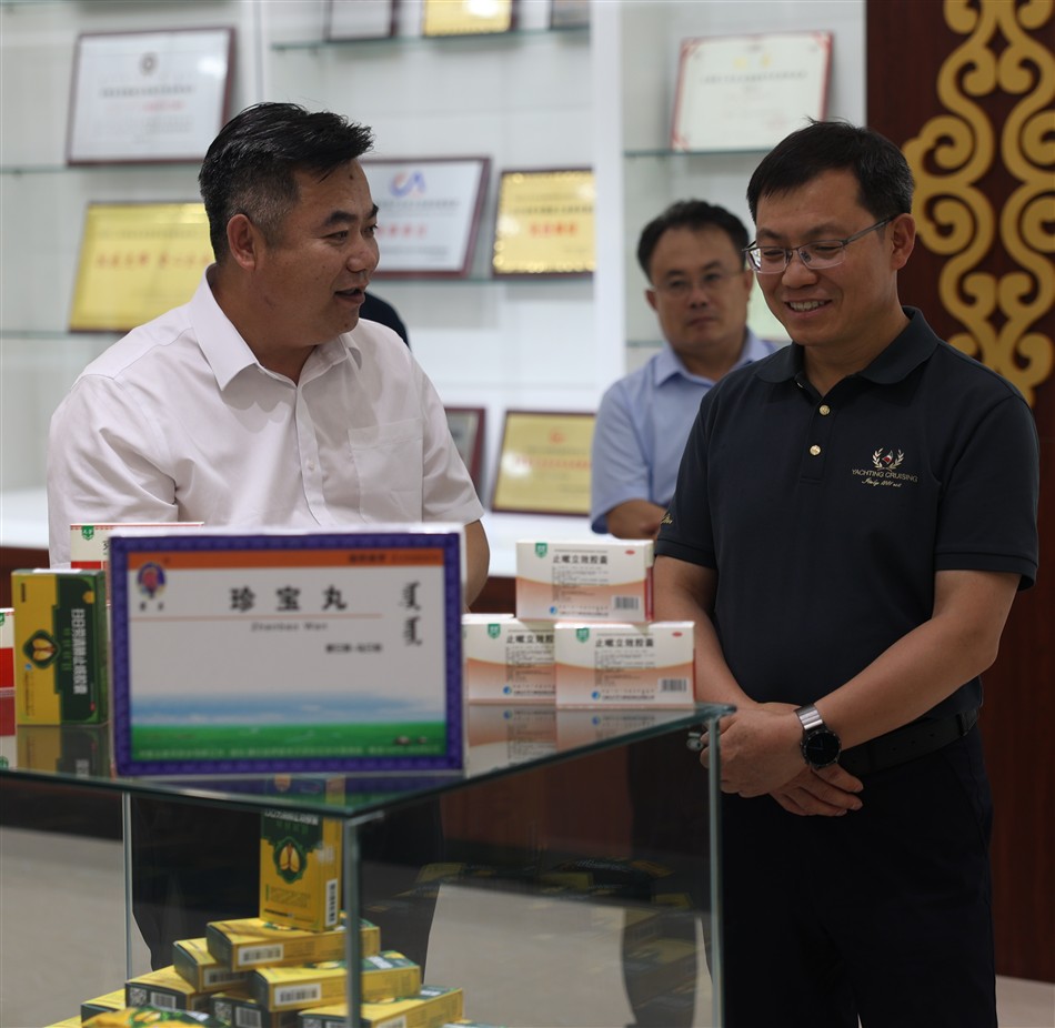 2023年7月11日下午,内蒙古自治区药监局局长徐天平、自治区药监局第二检查分局局长杨勇、副局长王振兴、郭莉、赤峰市市场监管局局长任海、副局长郑守强,在红山区区委常委、副区长黄聪伟及相关领导陪同下,到天奇蒙药集团调研指导工作。